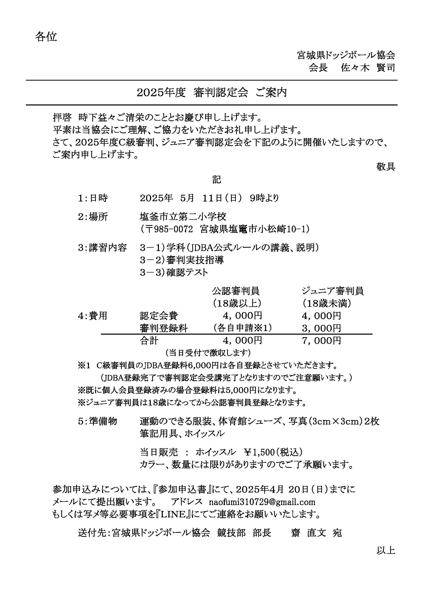 2024年度(春) 宮城県C級審判認定会【募集要項・申込書】
