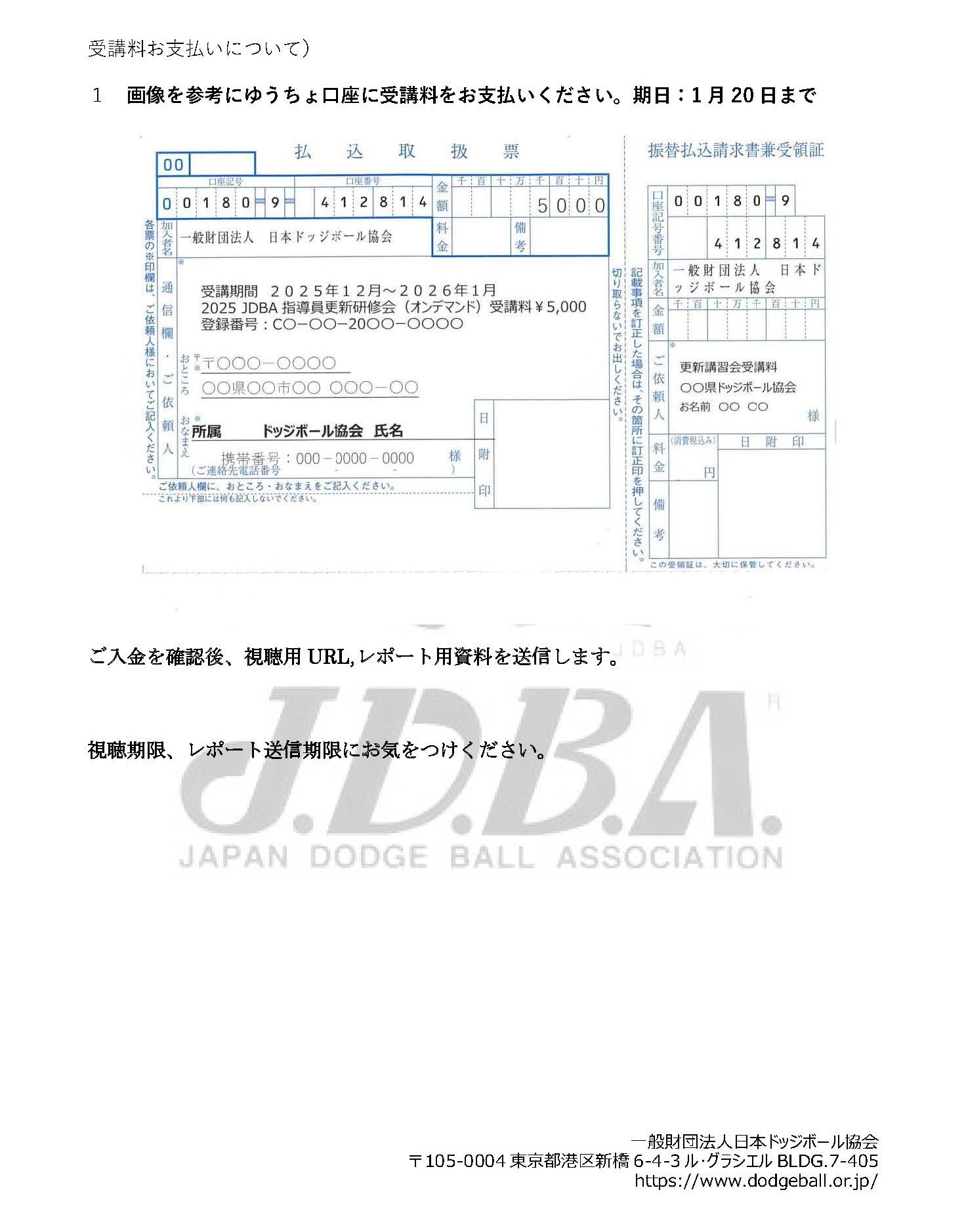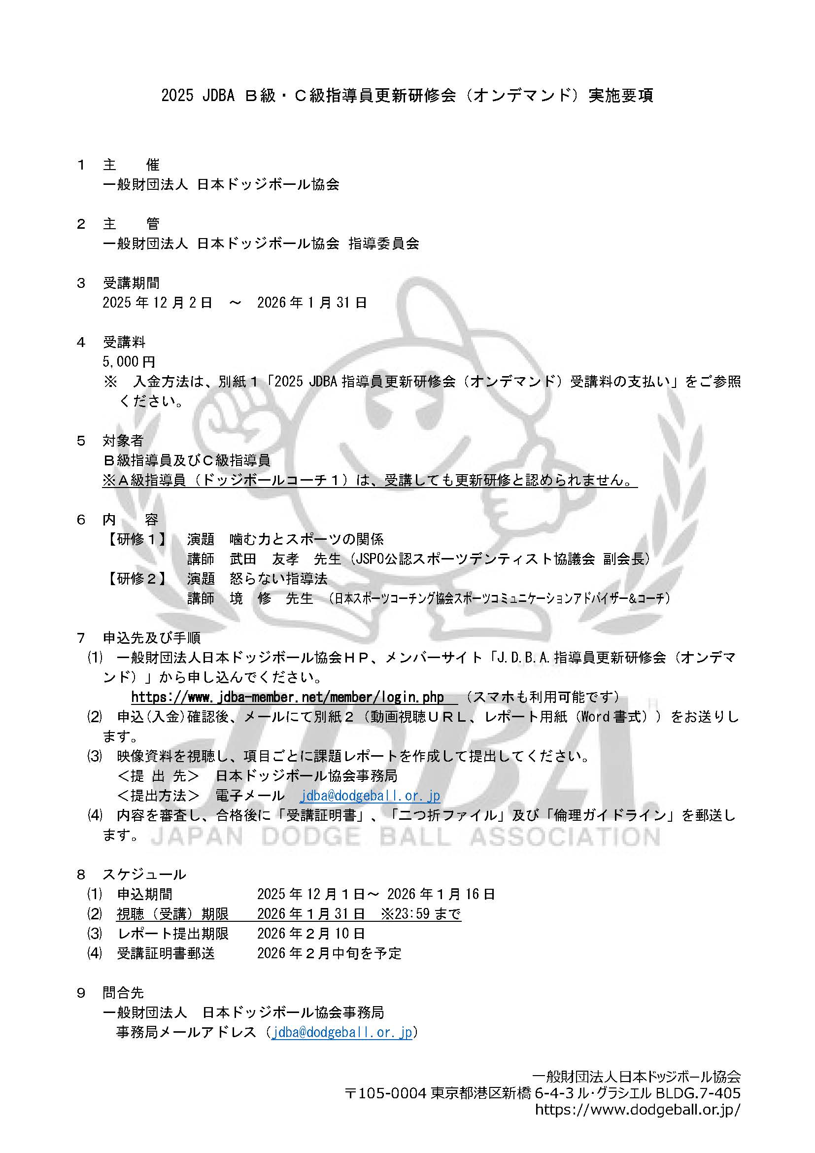 2025 JDBA B級・C級指導員更新研修会(オンデマンド)実施要項
